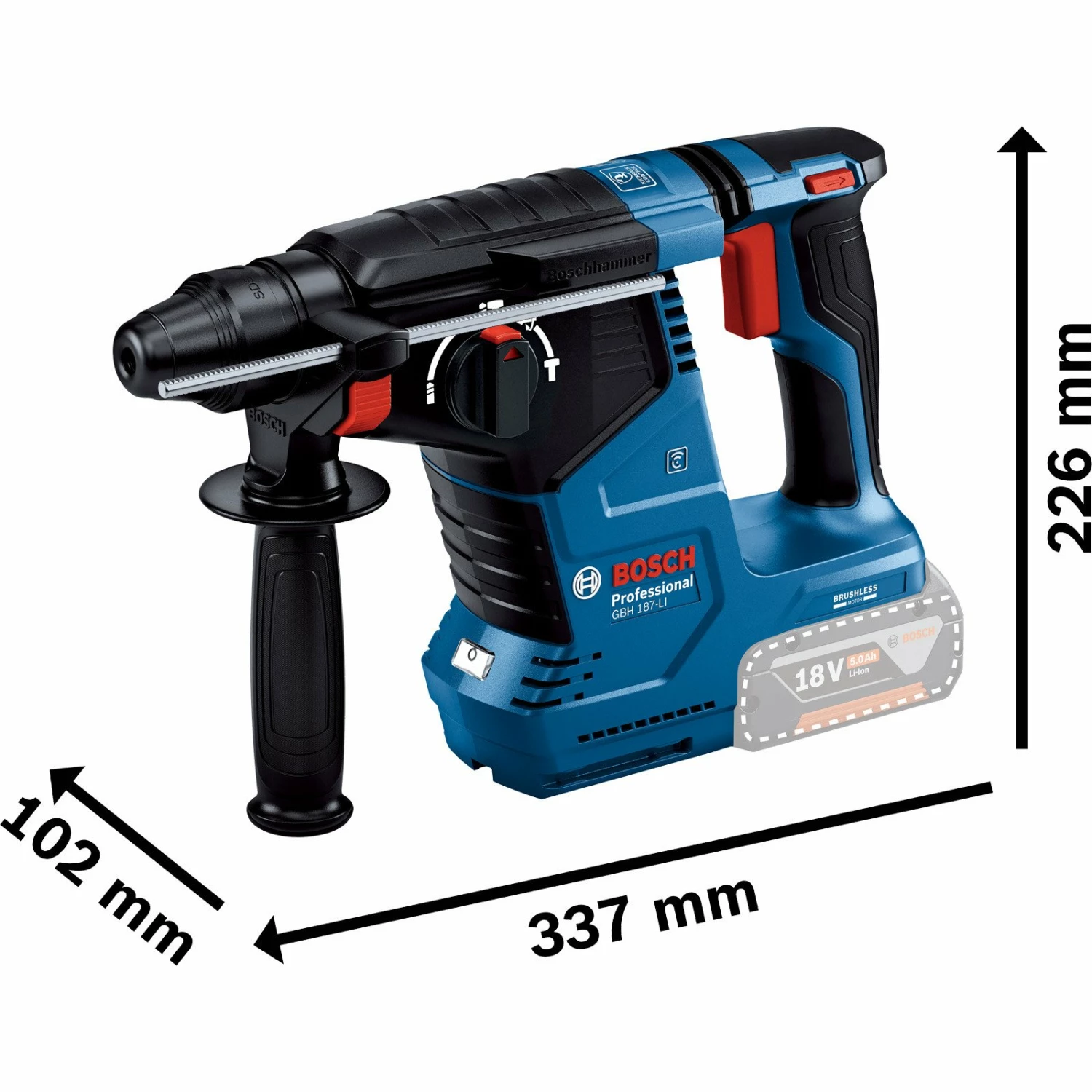 - Der GBH 18V-24 C Professional ist ein Allrounder aus dem Bosch SDS plus-Akku-Bohrhammer-Segment – perfekt für den täglichen Einsatz. Er ist mit einem bürstenlosen Motor ausgestattet und bietet mit KickBack Control und Vibration Control höheren Verletzungsschutz für den Anwender. Sein HMI-Display informiert bequem über den Akkustatus und sonstige anwenderrelevante Hinweise. Sein eingebautes Bluetooth Connectivity-Modul erlaubt eine schnelle und einfache Verbindung mit der Bosch Toolbox App für individuelle Einstellungen. Er ist kompatibel mit Boschs in sich geschlossenem Staubabsaugsystem GDE 18V-16 Professional, das mit nur einem Klick am Bohrhammer befestigt werden kann.