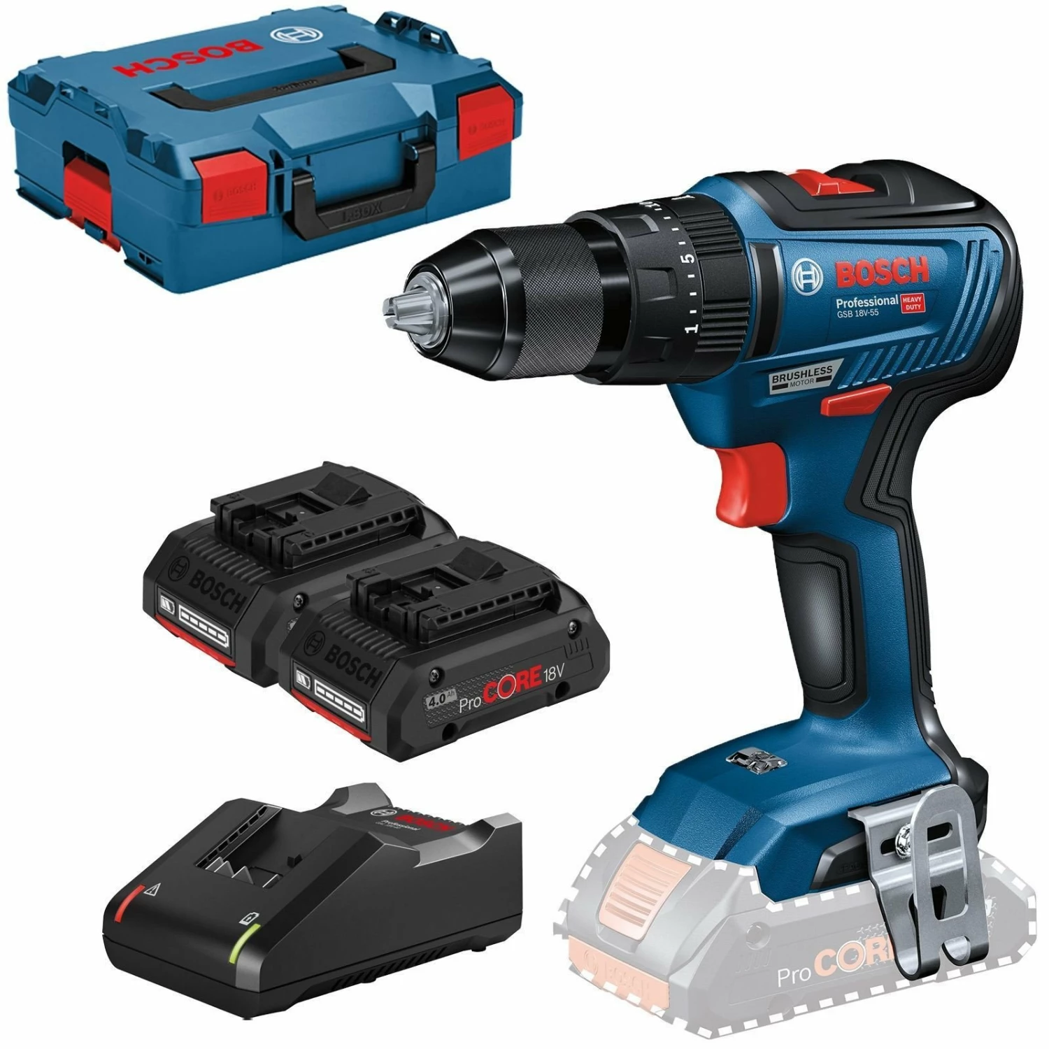 - 1x Bosch Akku-Schlagbohrschrauber GSB 18V-55
