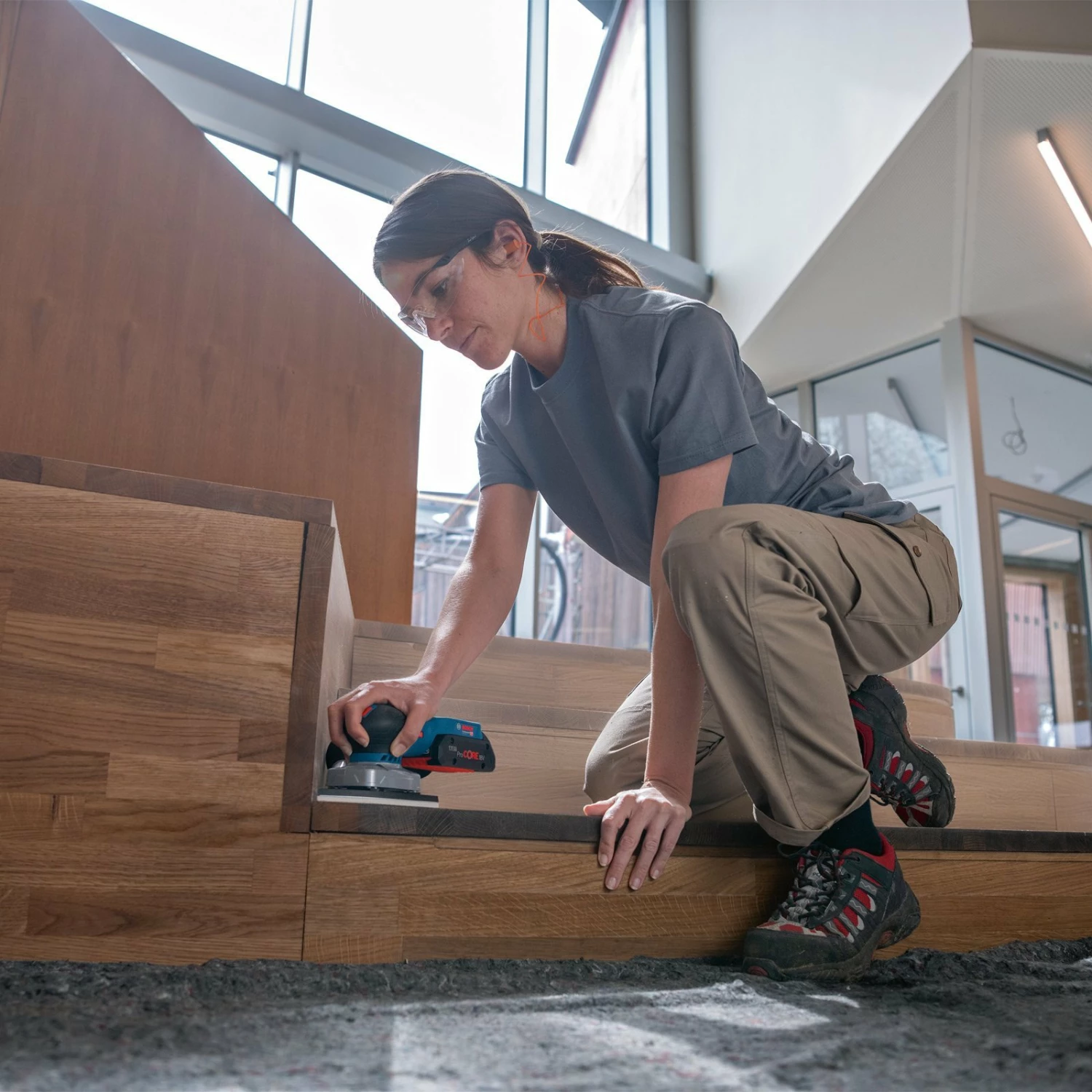- Der GSS 18V-13 Professional bietet optimale Kontrolle auf größeren Oberflächen. Dies wird erreicht durch eine ausgezeichnete Werkzeugbalance mit Schwerpunktlage nahe am Werkstück und der hervorragenden Ergonomie von Handablage und Griff. Sein bürstenloser Motor und das Bosch Professional 18V System garantieren schnellen Arbeitsfortschritt – empfohlen wird der Akku ProCORE18V 4.0Ah. Dank seines intuitiven Konzepts und dem System mit austauschbaren Schleifplatten ist er einfach zu bedienen.