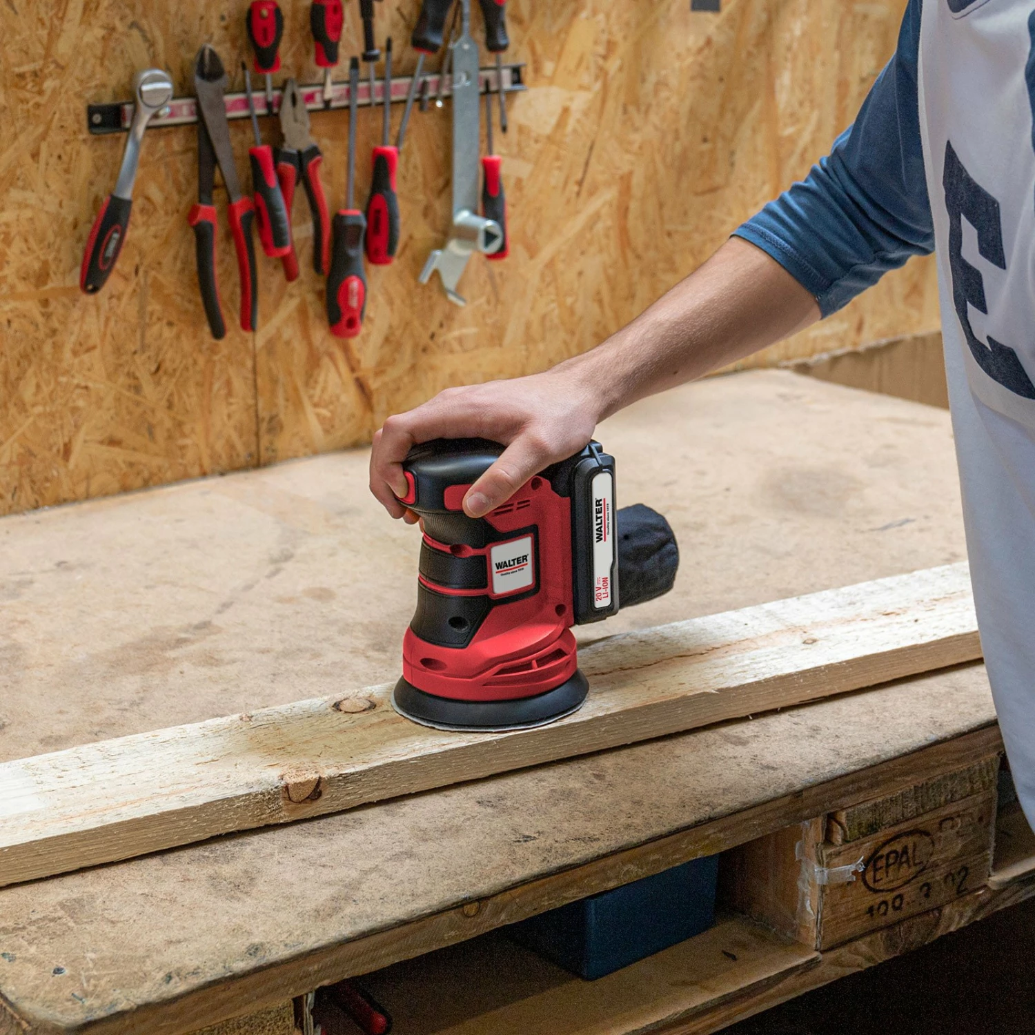 - Durch den Akkubetrieb des WALTER Akku-Exzenterschleifer 20 V wird die nötige Freiheit beim Arbeiten gewährleistet.